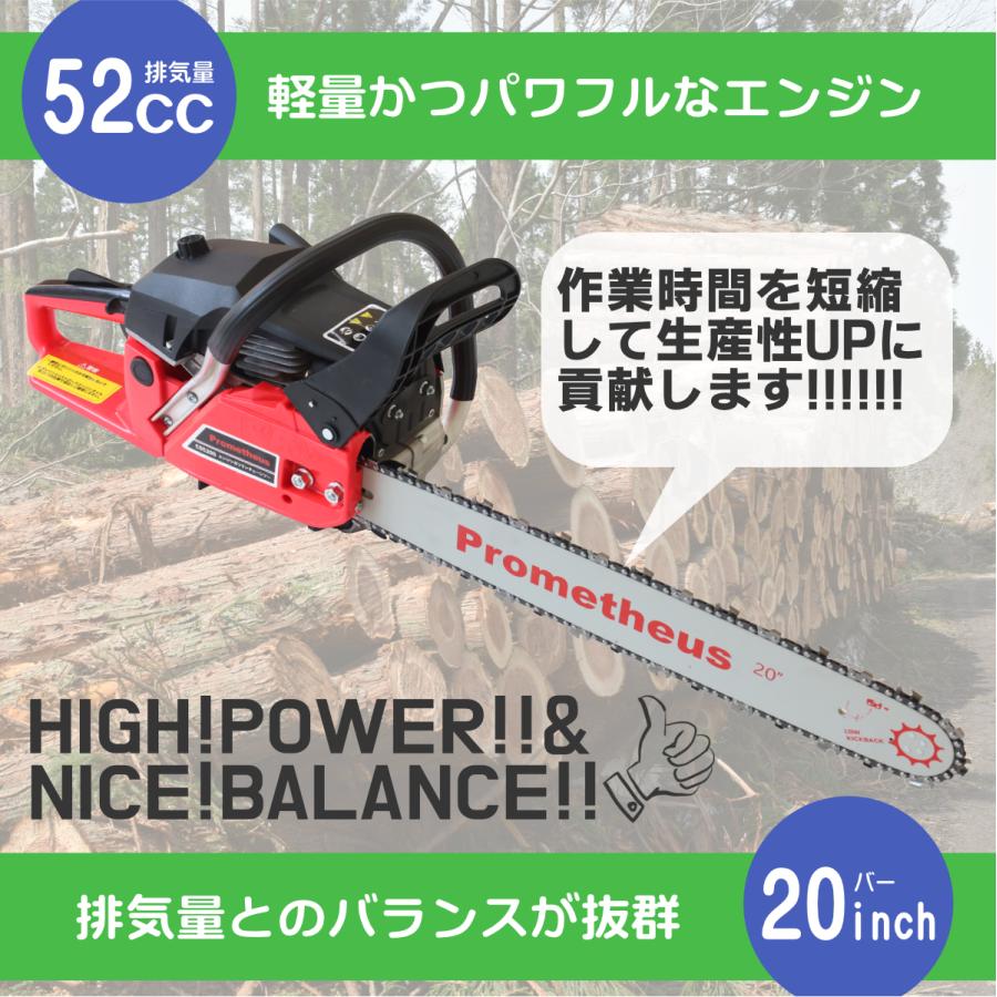 チェーンソー エンジン式 52cc 20インチ チェンソー ソーチェーン 本格プロ仕様